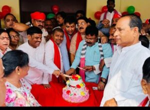 समाजवादी पार्टी कार्यालय पर जिला पंचायत अध्यक्ष का केक काटकर मनाया जन्मदिन