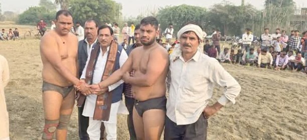दो जनपदों से आये पहलवान होशियार अनवर फिरोजाबाद दूसरे विष्णु पहलवान मथुरा दोनों के बीच हुई रोमांचित कुश्ती में अपने-अपने दांवपेंच दिखाये जिसमें होशियार पहलवान फिरोजाबाद ने मथुरा के पहलवान विष्णु को पराजित कर जीत हासिल की मेला आयोजकों द्वारा विजयी पहलवान को नगद पुरूस्कार व पट्टिका पहनाकर स्वागत सम्मान किया। इस दौरान भगवान दास, प्रधान बृजराज यादव,रानु यादव, हेम सिंह,संजीव यादव, महाराज सिंह यादव,सत्येंद्र यादव सहित आदि लोग दंगल में उपस्थित रहे |