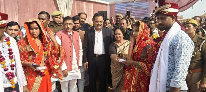 इटावा। रामलीला मैदान में समाज कल्याण विभाग द्वारा आयोजित मुख्यमंत्री सामूहिक विवाह समारोह में जिले के 154 जोड़े वैदिक मंत्रों और विधि-विधान के साथ वैवाहिक जीवन में बंध गए। जिलाधिकारी ने आशीर्वाद, देकर योजना की जानकारी दी। मुख्य अतिथि जिलाधिकारी शुभ्रांत कुमार शुक्ला ने सभी नवदंपतियों को आशीर्वाद और सफल वैवाहिक जीवन की शुभकामनाएं दीं। उन्होंने बताया कि इस योजना के तहत सरकार की ओर से प्रति जोड़े पर लगभग एक लाख रुपये का लाभ दिया जाता है। इस राशि का एक हिस्सा सीधे जोड़े के बैंक खाते में और शेष राशि का उपयोग उन्हें आवश्यक घरेलू सामान खरीदने के लिए किया जाता है। इसके अलावा, भोजन और समारोह की पूरी व्यवस्था सरकार द्वारा ही की गई थी। इस अवसर पर पूर्व सांसद प्रेमदास कठेरिया, विधायक प्रतिनिधि हरिनारायण बाजपेई, जिला पंचायत सदस्य सचिन यादव और जिला अध्यक्ष व्यापार मंडल आलोक दीक्षित सहित कई गणमान्य व्यक्ति मौजूद रहे। कार्यक्रम स्थल पर सीओ सिटी अभय नारायण राय और शहर कोतवाल यशवंत सिंह के नेतृत्व में सुरक्षा के पुख्ता इंतजाम रहे। जिला समाज कल्याण अधिकारी संध्या रानी बघेल ने सहयोगियों और प्रतिभागियों को धन्यवाद देते हुए समारोह का समापन किया। समारोह न केवल एक सामाजिक कल्याणकारी योजना का सफल क्रियान्वयन था, बल्कि इसने 154 परिवारों को एक नई शुरुआत का उपहार देकर जिले में खुशिया बिखेर दीं।