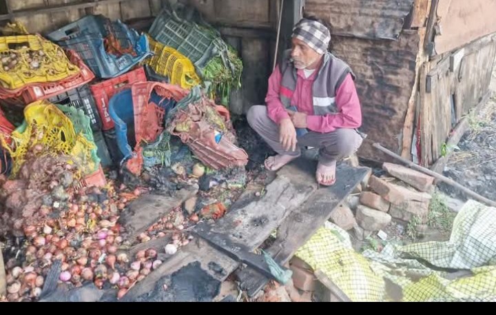 सब्जी विक्रेता के लकड़ी के खोखा में लगी आग