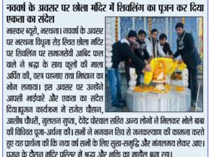 पूजन कार्यक्रम में राजेश चौहान, आशीष चौधरी, गुलशन गुप्ता, नरेंद्र पोरवाल सहित अन्य लोगों ने मिलकर भोले बाबा की विधिवत पूजा-अर्चना की। सभी ने भगवान शिव से जनकल्याण की कामना करते हुए यह प्रार्थना की कि नया वर्ष सभी के लिए सुख-समृद्धि और मंगलमय लेकर आए।पूजन के दौरान मंदिर परिसर में श्रद्धा और भक्ति का माहौल बना रहा।