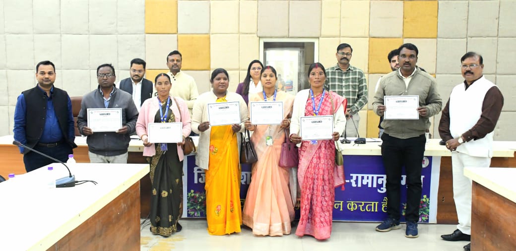 वहीं रामानुजगंज विधानसभा क्षेत्र के मतदान केन्द्र क्रमांक 245, तरकाखाड़ की बीएलओ शांति यादव एवं अविहित अधिकारी संजय कुमार मिंज को भी उत्कृष्ट कार्य के लिए प्रशस्ति पत्र प्रदान किया गया।