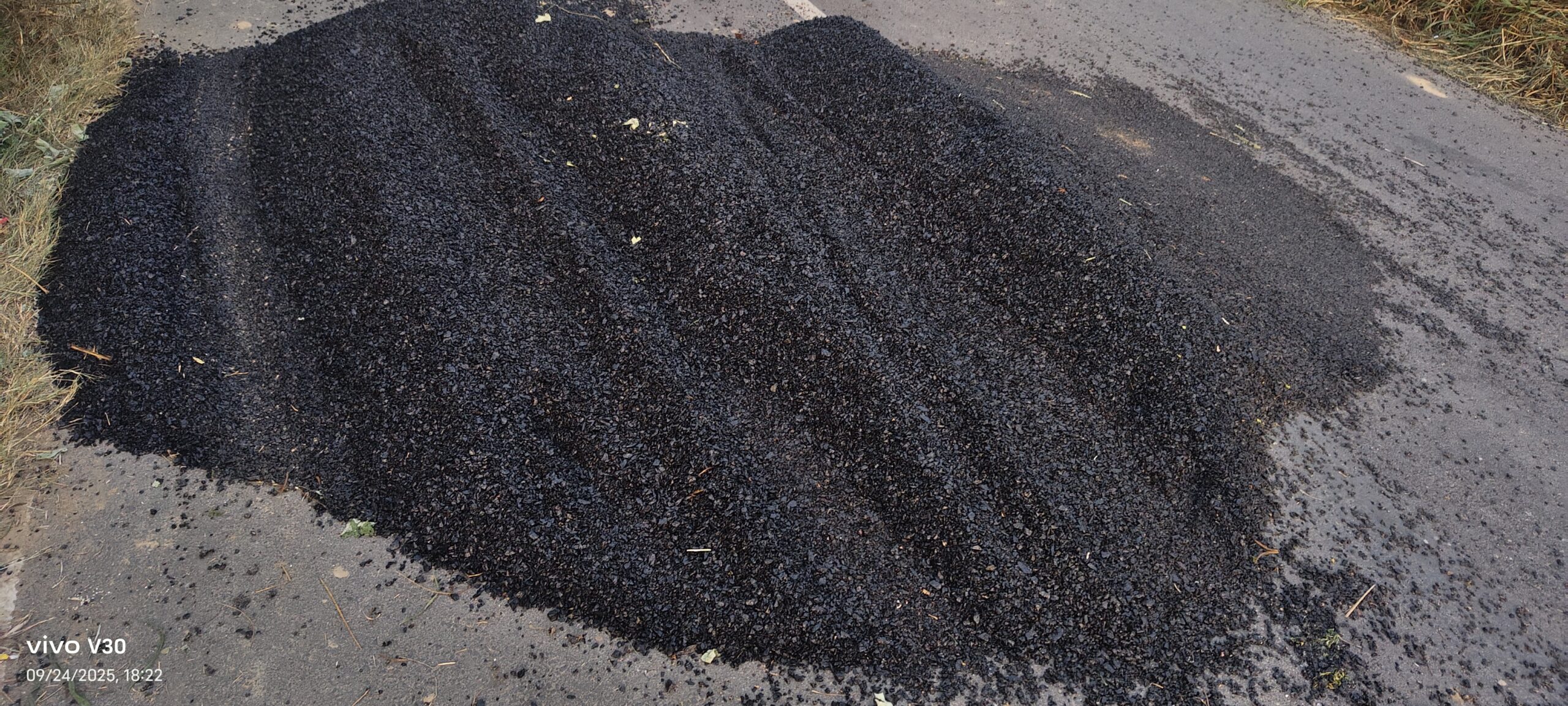 अहेरीपुर-महेवा-अछल्दा मार्ग पर हादसे का खतरा, रोड पर पड़ा गिट्टी-डामर का ढेर बना मुसीबत