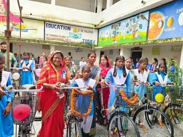 बलरामपुर, 02 जुलाई 2025/ जिला बलरामपुर के शंकरगढ़ विकासखंड में मंगलवार को शाला प्रवेश उत्सव कार्यक्रम का आयोजन हर्षोल्लास के साथ किया गया। कार्यक्रम में मुख्य अतिथि के रूप में सामरी विधायक उद्देश्वरी पैकरा शामिल हुईं। उन्होंने नवप्रवेशी विद्यार्थियों का गर्मजोशी से स्वागत किया और उन्हें शिक्षा के प्रति प्रेरित करते हुए उज्ज्वल भविष्य की शुभकामनाएं दीं। बच्चों को शाला आने के लिए शासन की ओर से साइकल भी वितरण किया गया।