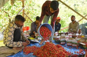 Srinagar, May 21:The picturesque orchards of Kashmir are alive with activity as the cherry harvest season kicks off across the Valley. Known for producing some of the juiciest and most luscious cherries in the country, Kashmir is once again drawing attention with this year’s bountiful yield.