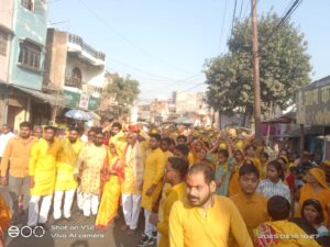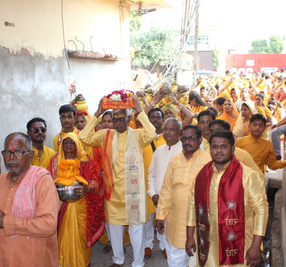 गाजे बाजे के साथ ईश्वरीय गुणगान कर मंगल कलश यात्रा निकाली गई,