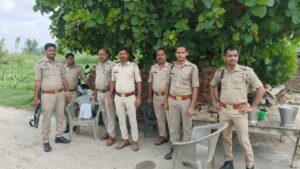 अहेरीपुर से दांदरपुर जाने वाले रास्ते पर मुस्तैद पुलिसकर्मी