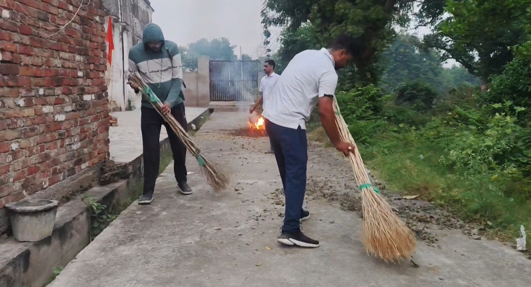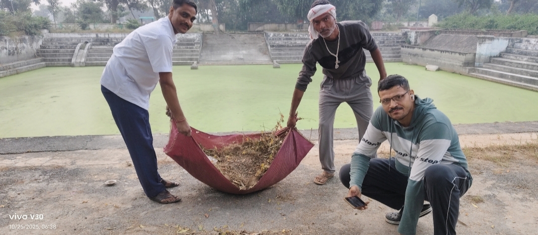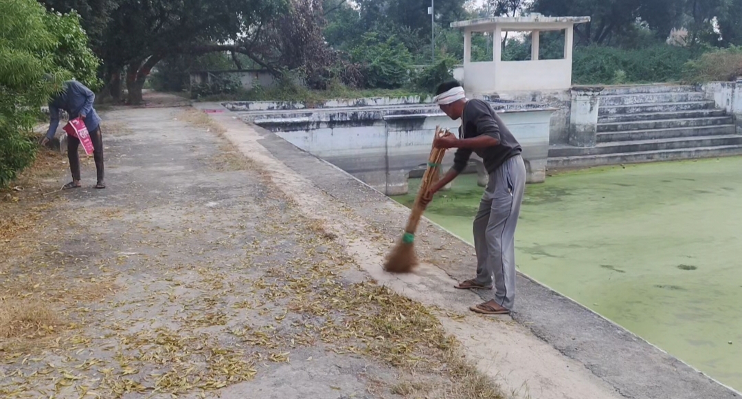 आज सुबह से ही संघ के कार्यकर्ताओं ने अमृत सरोवर परिसर में फैले सूखे पेड़-पौधों, टहनियों और झाड़ियों को हटाने का कार्य किया। पूरे सरोवर परिसर में झाड़ू लगाई गई और कचरे को एक स्थान पर एकत्रित कर सुरक्षित रूप से जलाया गया। इस श्रमदान से अमृत सरोवर का स्वरूप निखरता जा रहा है और ग्रामवासी भी इस प्रयास से प्रेरित हो रहे हैं।