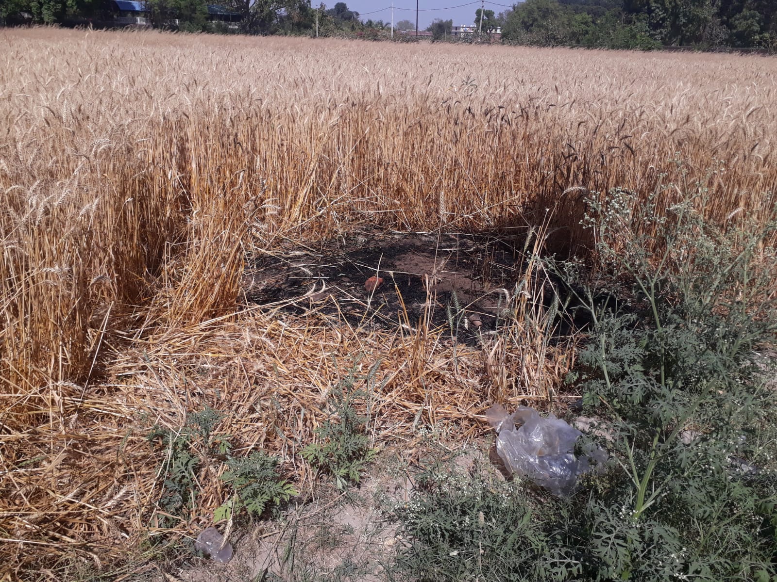 खजूर के पेड़ में आग लगने से पकी खड़ी गेहूं की फसल बाल – बाल बच गई