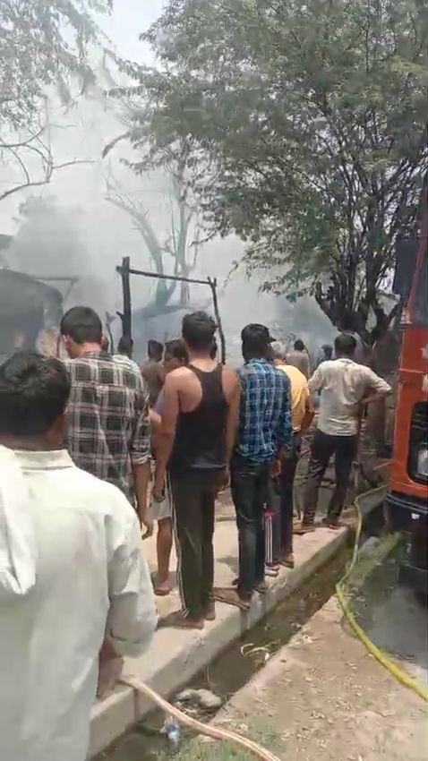 झोपड़ी में आग लगने से भूसा और अनाज जल गया